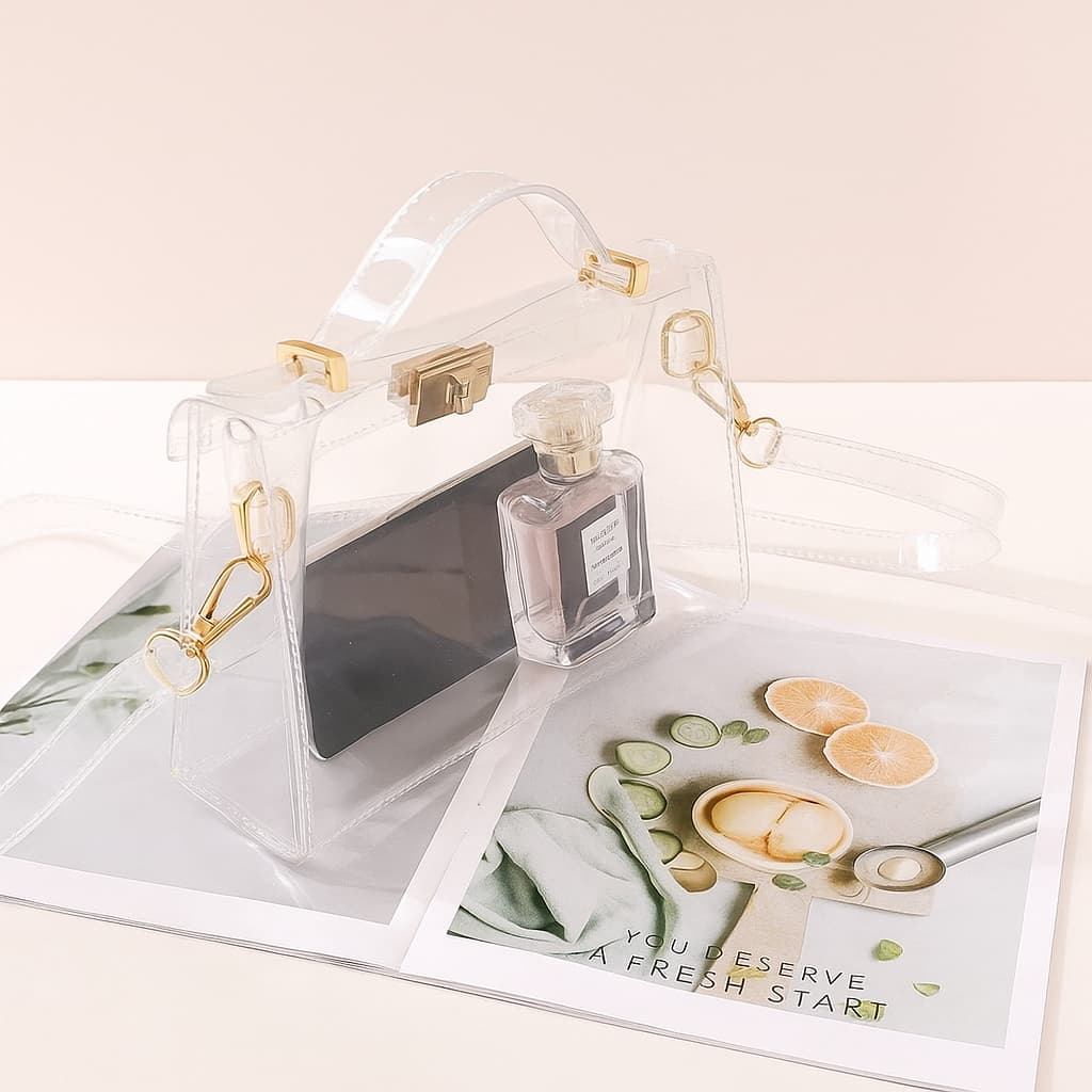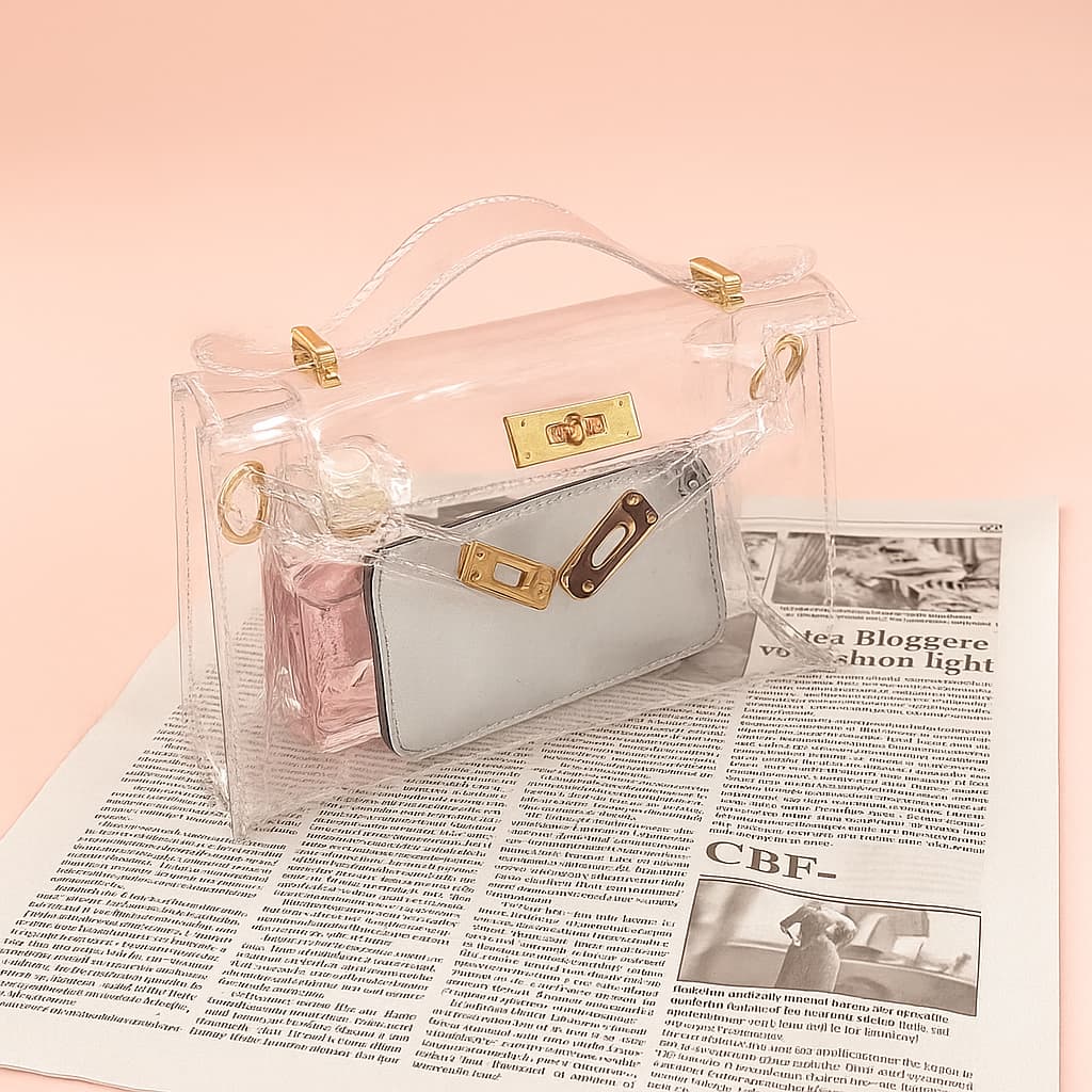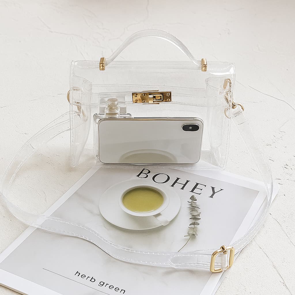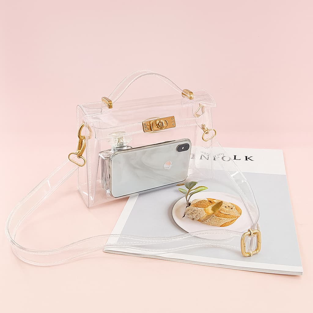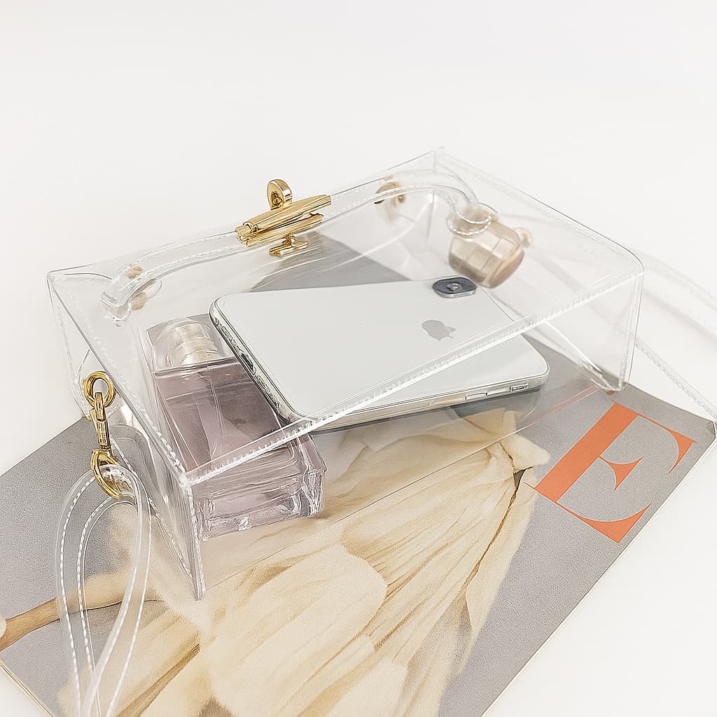 We get it - thatβs the worst part of clear bags. But hereβs the difference: Our bag, made with love, is structured with a front flap and gold turn lock, so your essentials arenβt on display like in a floppy plastic pouch. Youβll glide through security without broadcasting your private items. Discreet, chic, and still stadium-approved. Whenever I use my clear bag with pouches, they just look at both sides and let me in. People canβt see my tampons or chapstick lol.